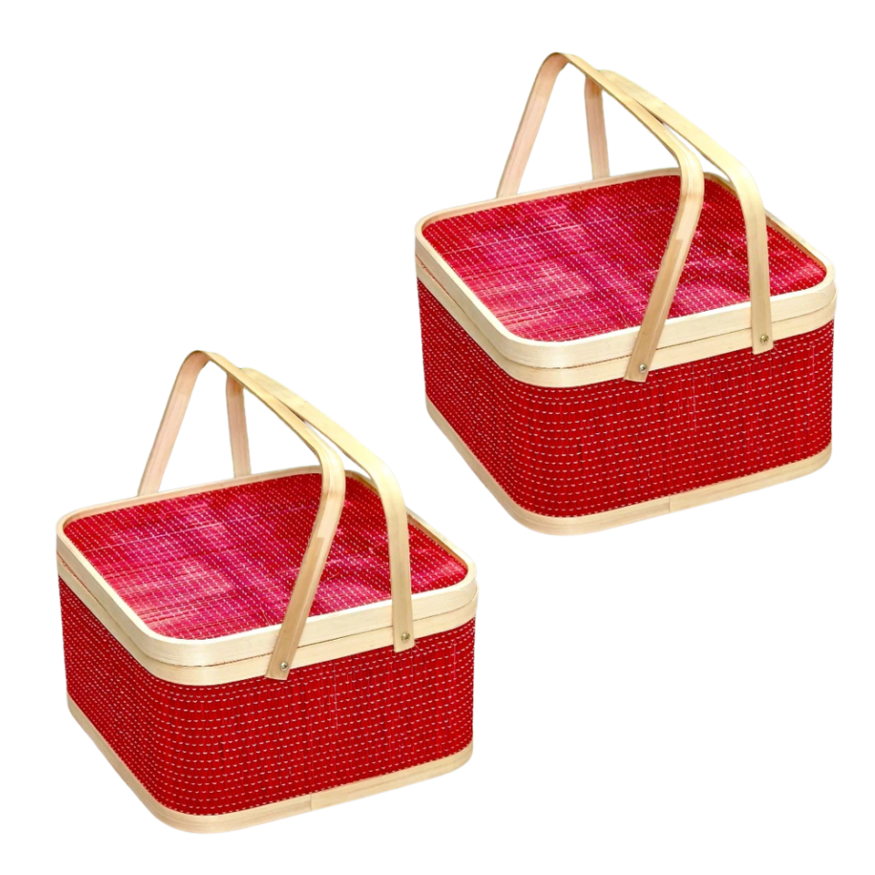 Cesta de Regalo de BAMBÚ Más Vendida con Tapa y 2 Asas, Color Personalizado Disponible, Artesanía de Mimbre, Embalaje Artesanal