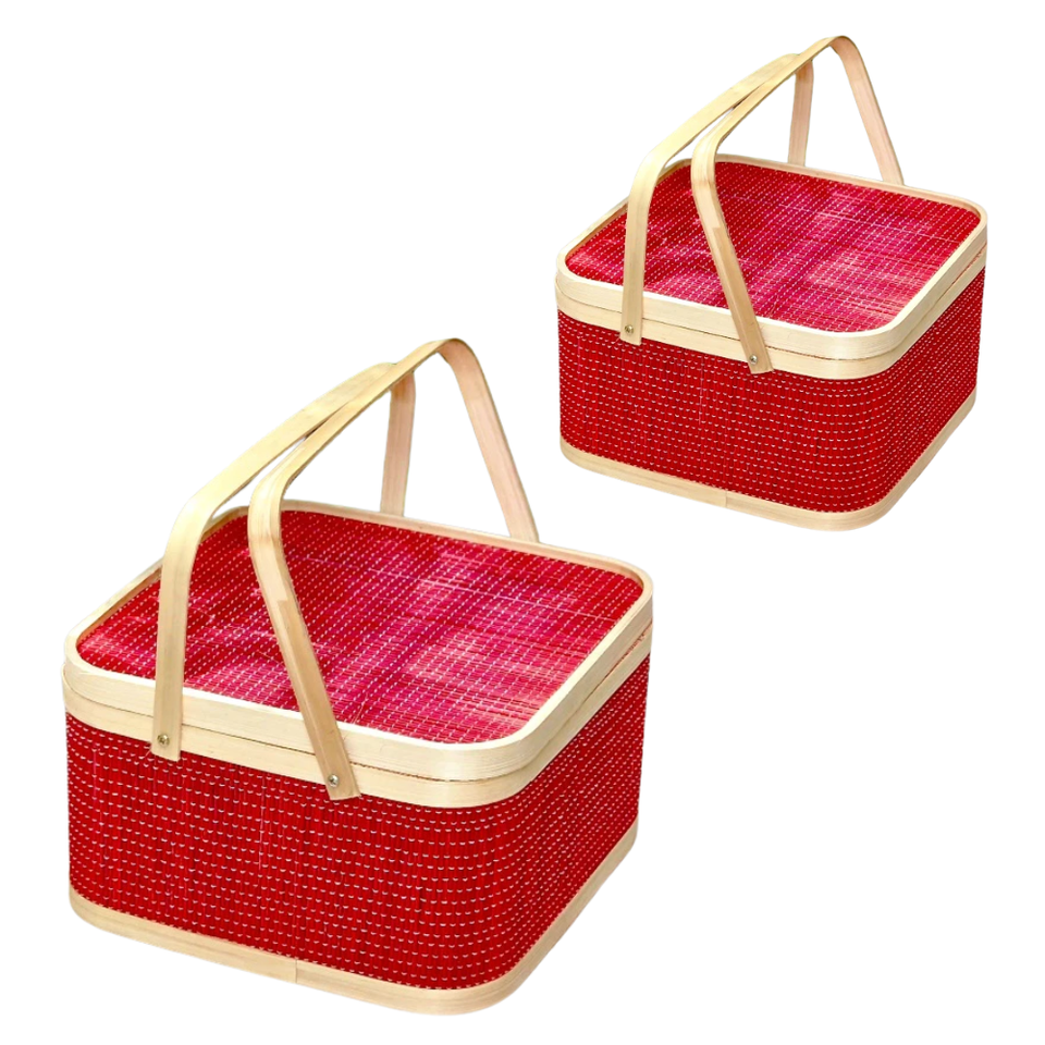 Cesta de Regalo de BAMBÚ Más Vendida con Tapa y 2 Asas, Embalaje Sostenible Hecho a Mano, Artesanía de Mimbre, Embalaje Ecológico