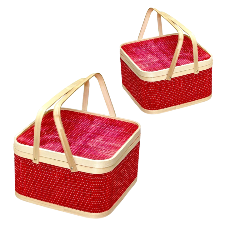 Cesta de Regalo de BAMBÚ Más Vendida con Tapa y 2 Asas, Color Personalizado Disponible, Artesanía de Mimbre, Embalaje Artesanal de Vietnam