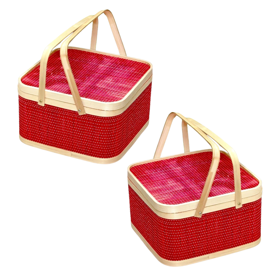 Cesta de Regalo de BAMBÚ Más Vendida con Tapa y 2 Asas, Color Personalizado Disponible, Artesanía de Mimbre, Artesanía de Vietnam