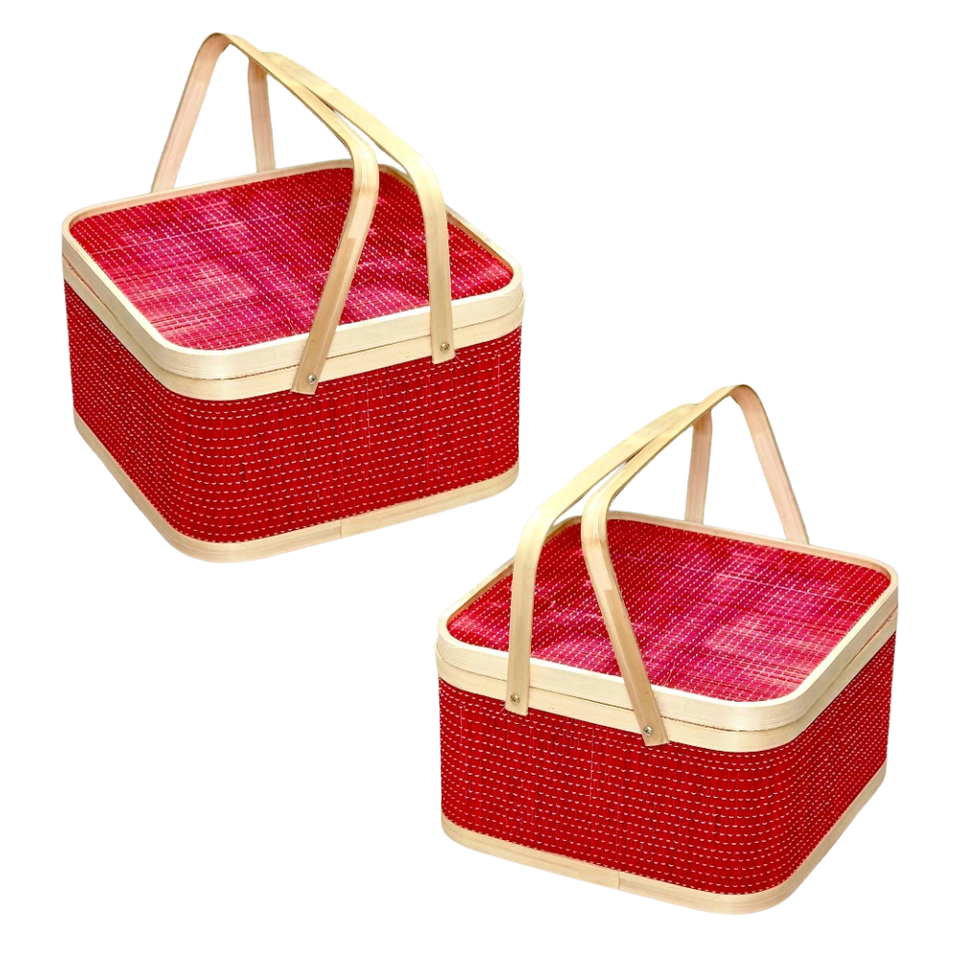 Cesta de Regalo de BAMBÚ Más Vendida con Tapa y 2 Asas, Color Personalizado Disponible, Artesanía de Mimbre, Artesanía de Vietnam, Cesta Tejida