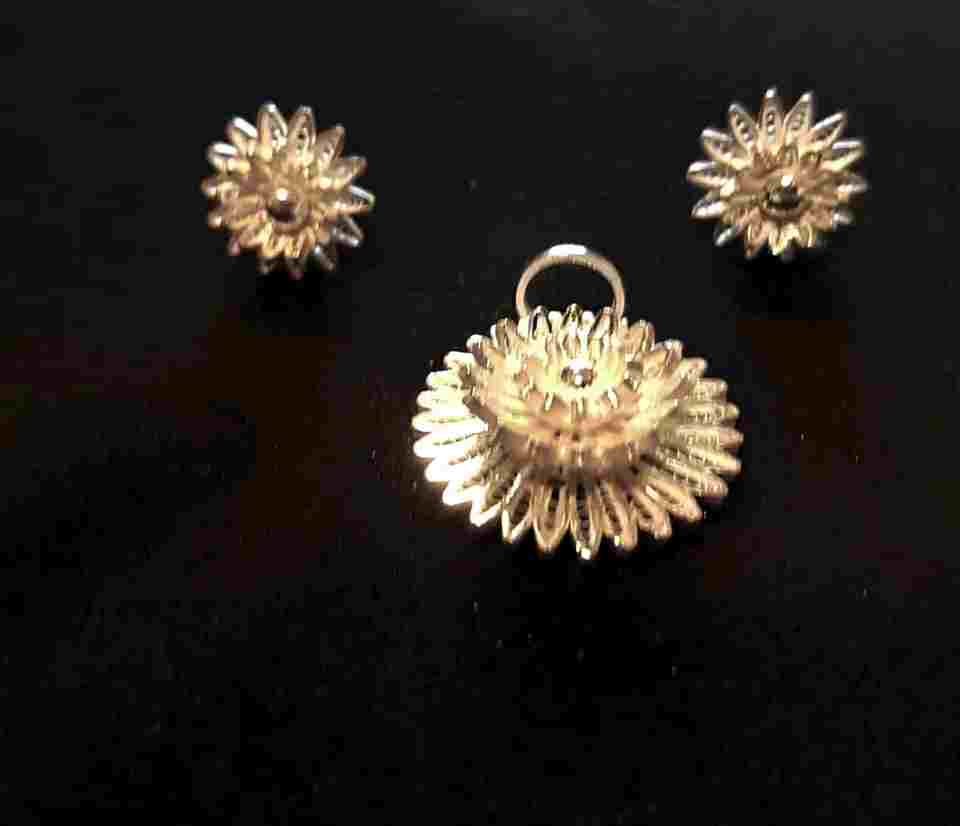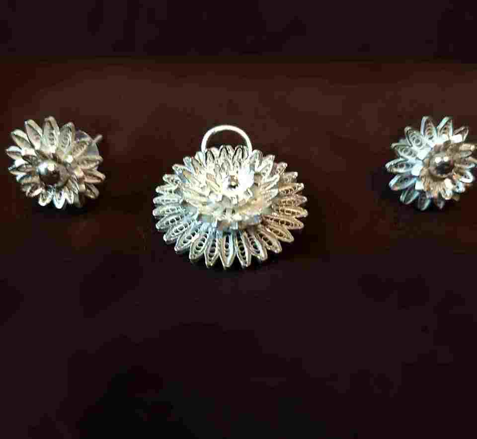Product Name:Bakul - Silver Filigree Earring Pendant set