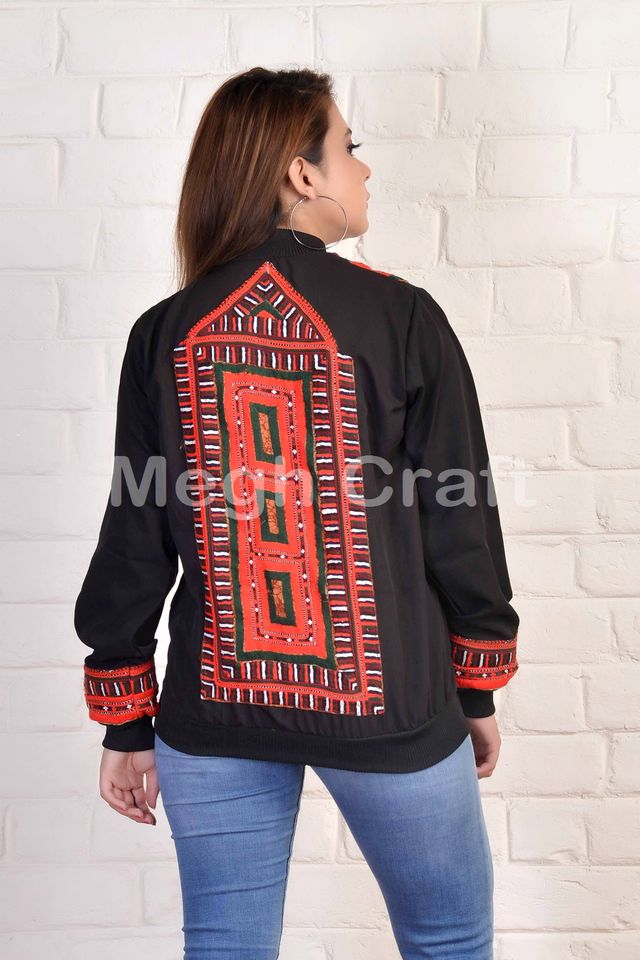 Chaqueta Bomber de Moda Invernal Estilo Vintage, Bordado a Mano Balochi, Algodón Ecológico, Lentejuelas, Corta, Boho, Gitana, Superventas