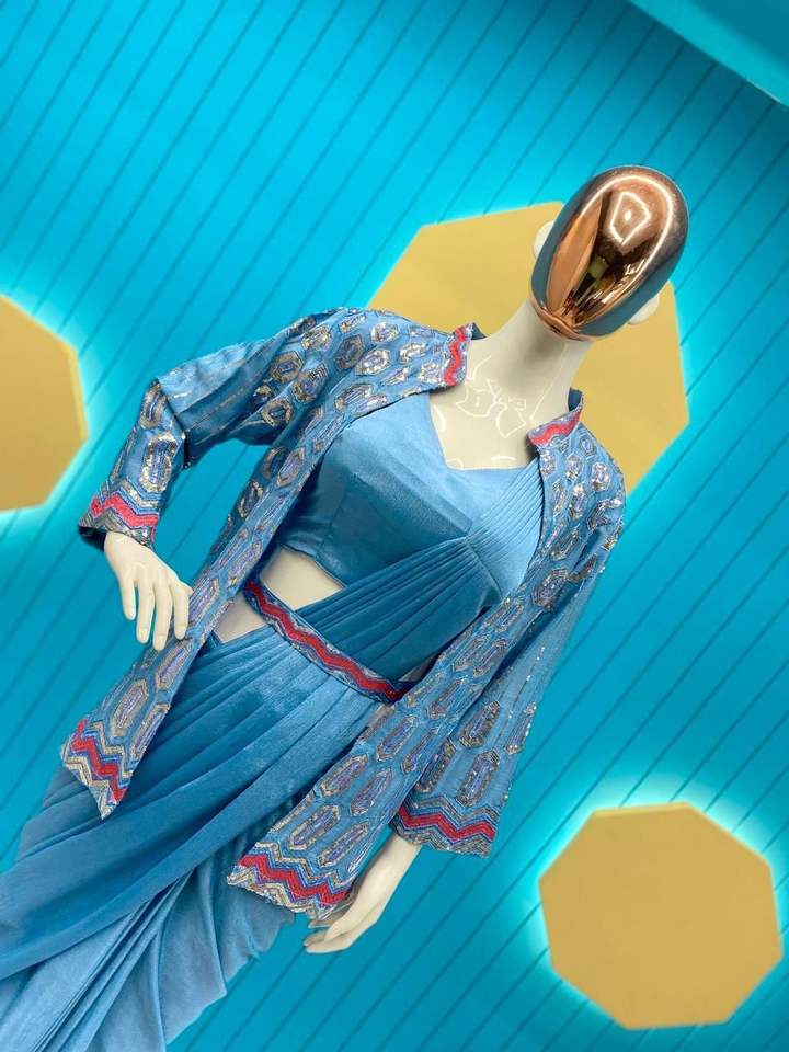 Superventas hermoso diseño secuencia bordado trabajo Chinon seda Sari para niñas Oficina vida uso Sari para exportación