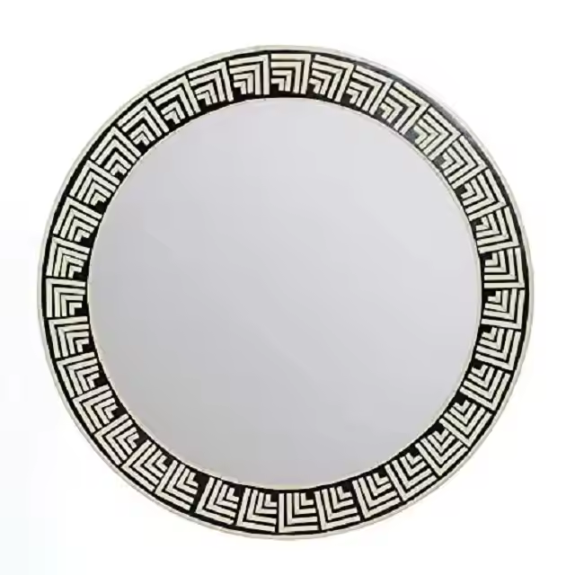 Espejo decorativo de pared con incrustaciones de hueso más vendido, marco de espejo colgante para sala de estar y dormitorio, espejo de oficina de artesanía creciente
