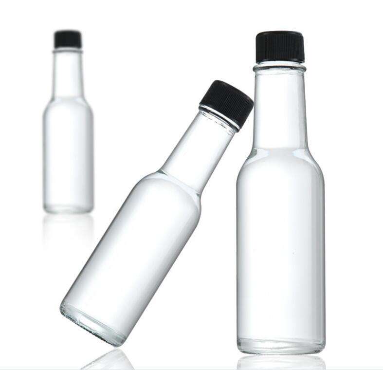 Mejor venta Capot 150ML pequeño cilindro de vidrio de borosilicato vacío salsa picante y botella de Ketchup con tapas de plástico