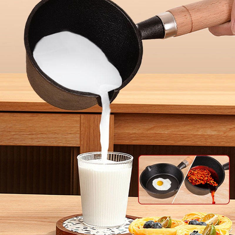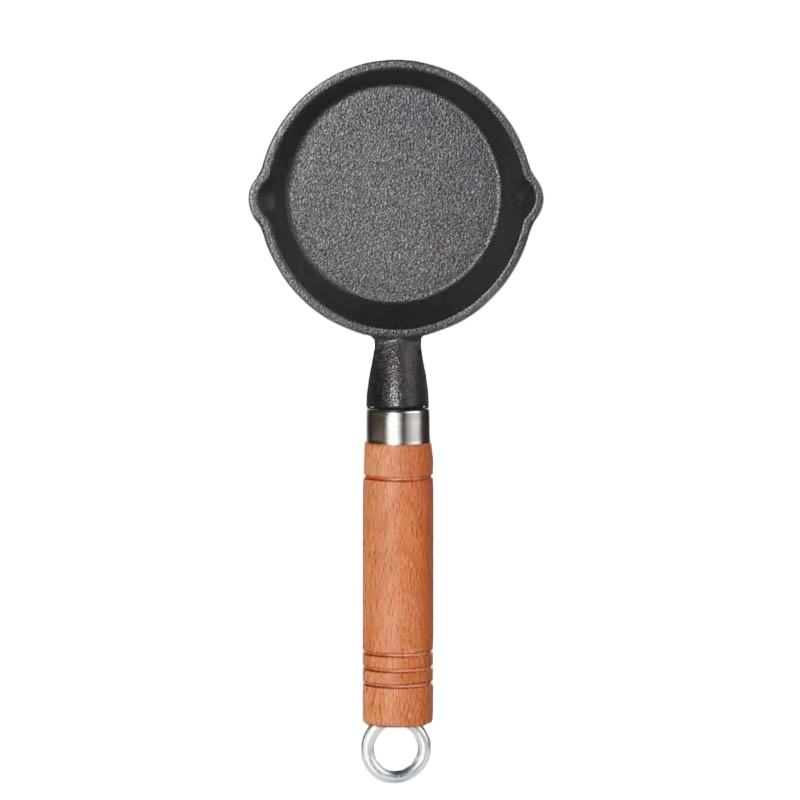 Sartén antiadherente de hierro fundido más vendida, sartén no recubierta para huevos fritos, sartén para bistec frito, sartén de hierro fundido con mango de madera