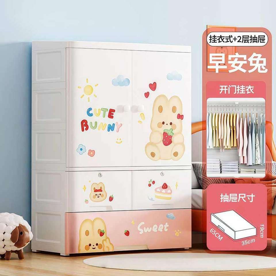Armario de Juguetes de Plástico para Bebés de 3 Niveles y 70 cm, con Compartimentos, Cajones y Perchero para Ropa, Precio Económico y Más Vendido