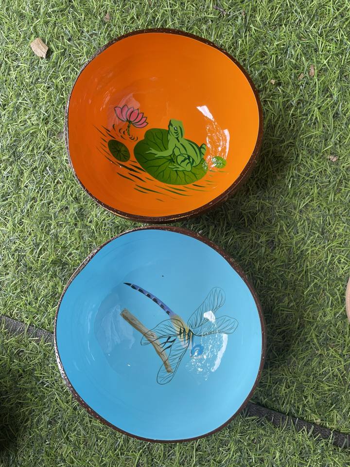 Cuenco de coco dorado de laca de colores más vendido con logotipo personalizado Cáscara de coco natural Hecho en coco de laca de Vietnam