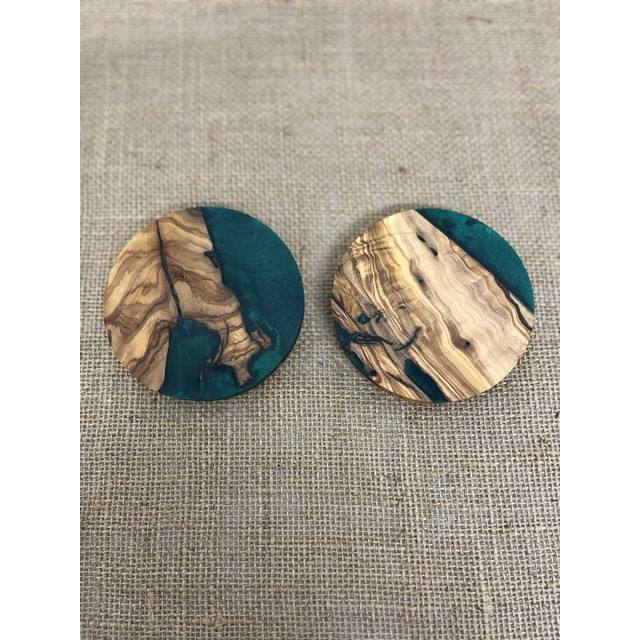 Posavasos de madera creativos más vendidos Bebidas de té Posavasos de resina epoxi Apartamento Olive River Premium Madera de nogal Hecho EN LA India