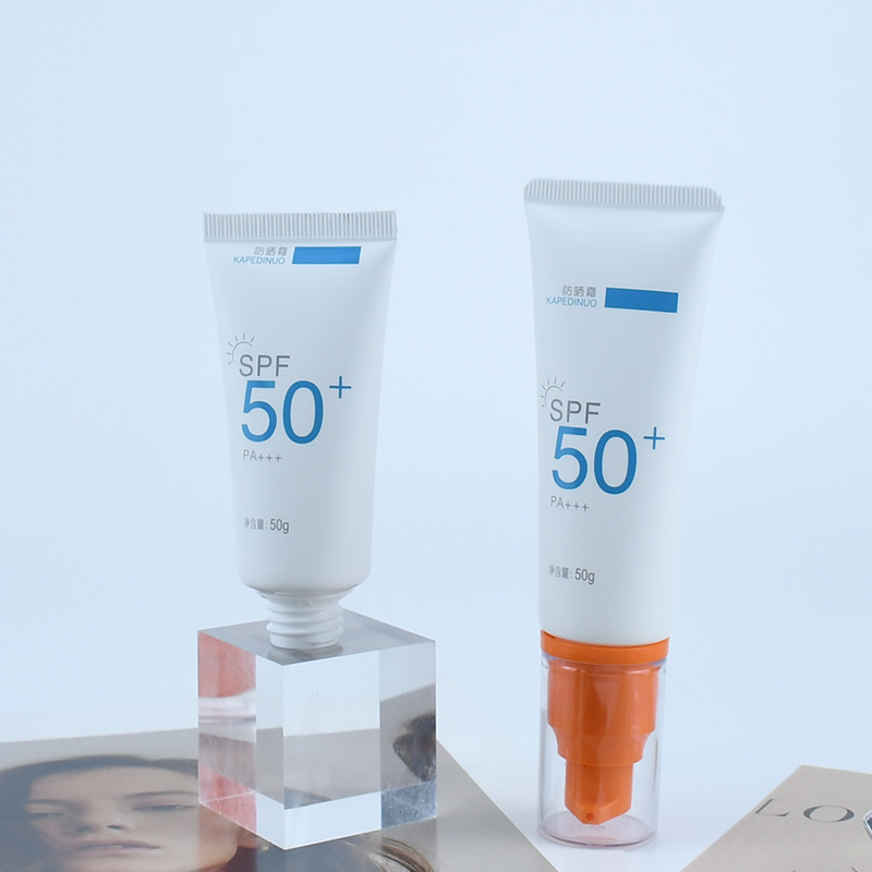 Tubo suave de 50ml personalizado más vendido con bomba de botella sin aire Tubo de protección solar Embalaje para el cuidado de la piel