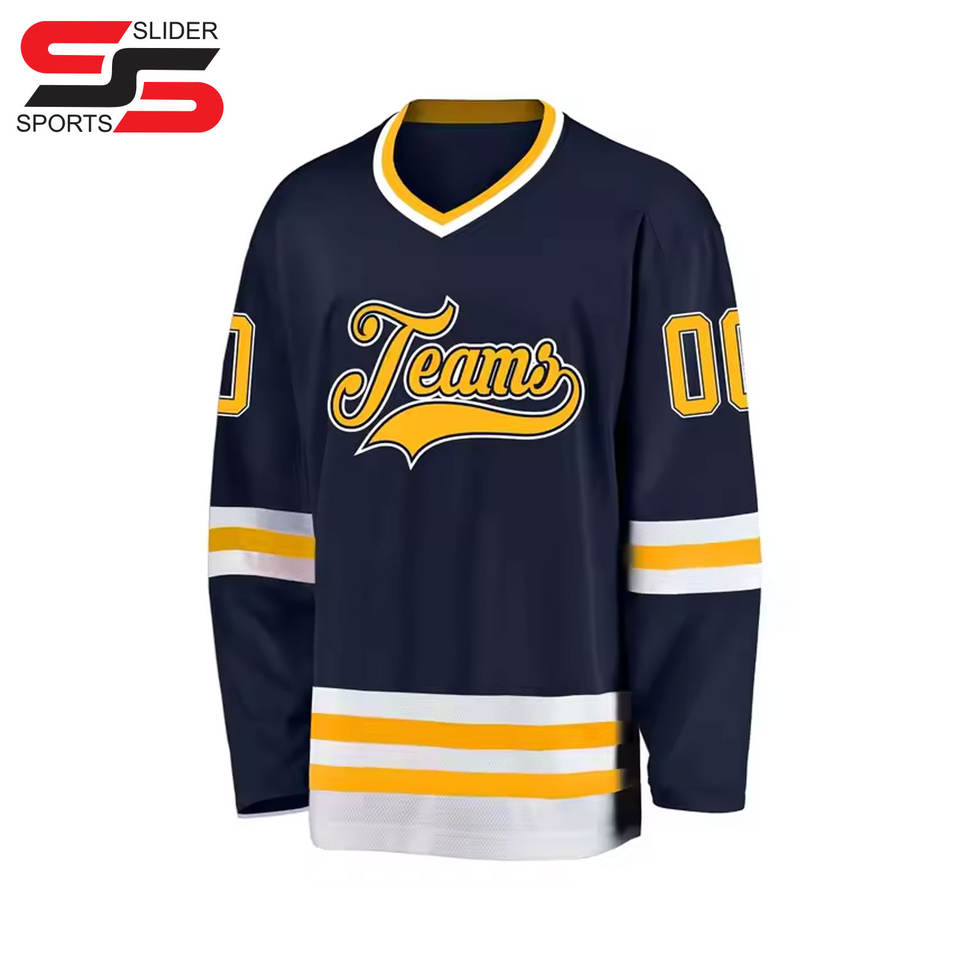 Camiseta de hockey sobre hielo con apliques bordados personalizados superventas, camiseta de hockey de poliéster
