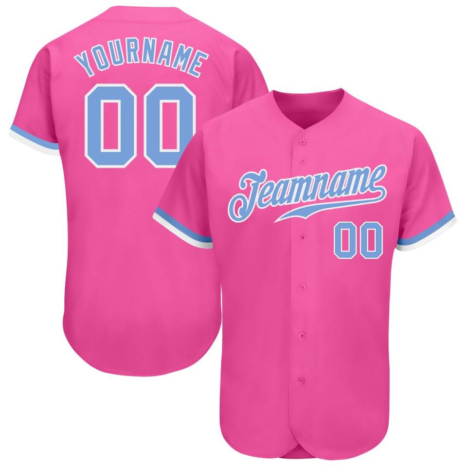 Ropa de equipo personalizada más vendida Camiseta de béisbol auténtica rosa azul claro-blanca