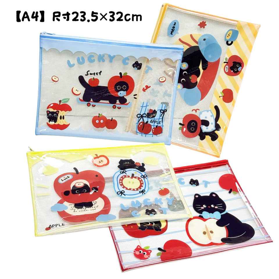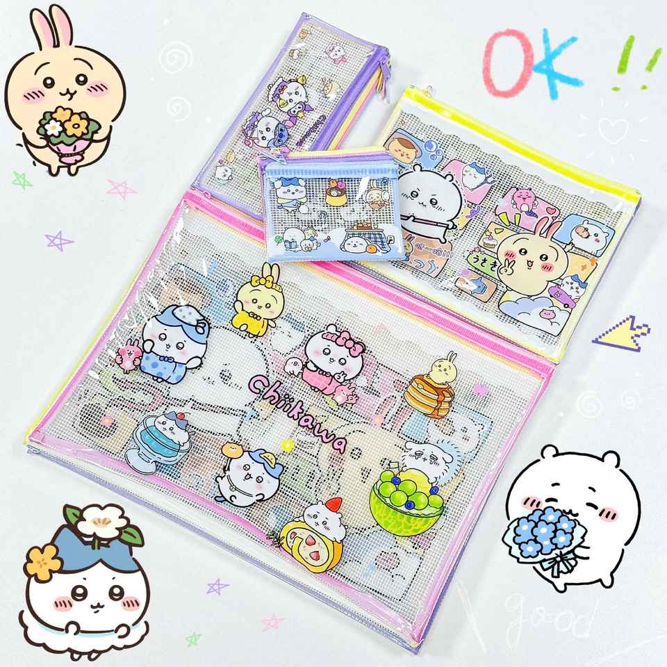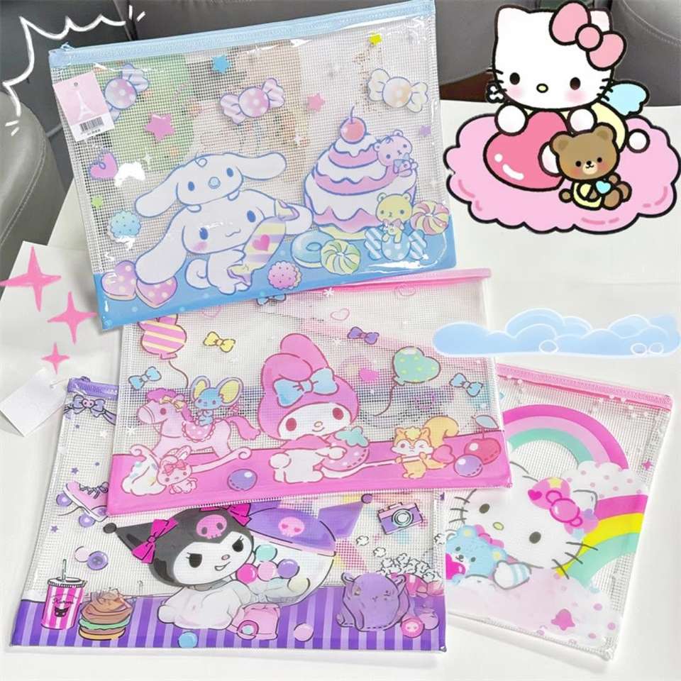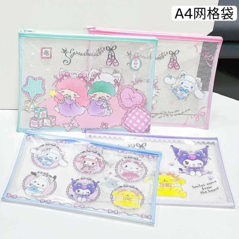 Mejor venta lindo diseño de dibujos animados 4 tamaños PVC cremallera rejilla archivo bolsa al por mayor portátil escuela papelería libro bolsas de almacenamiento