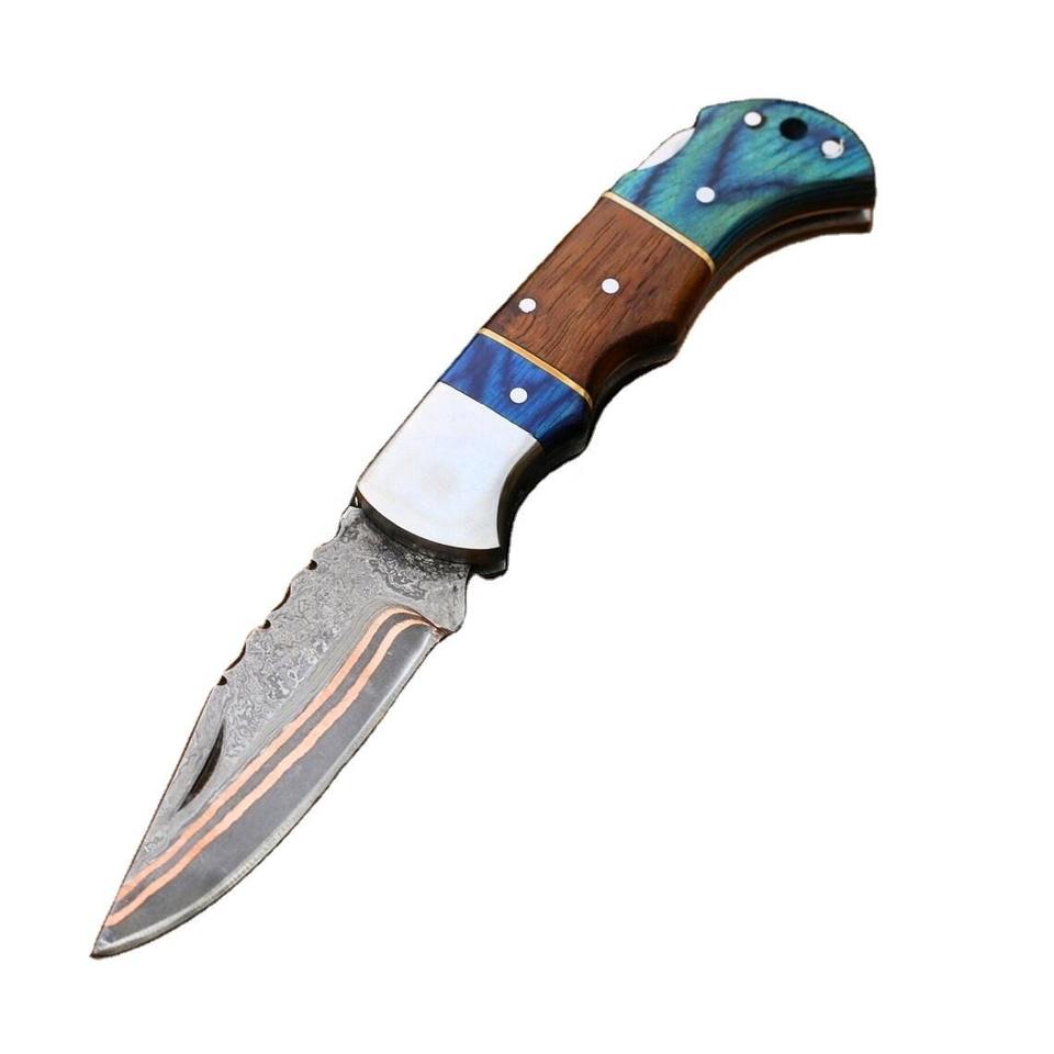 Navaja de Bolsillo Plegable de Acero de Damasco Más Vendida, Mango de Madera de Alta Calidad, Supervivencia al Aire Libre, Camping, OEM