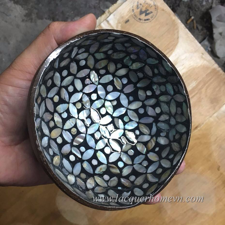 Best Selling Eco friendly Seashell Inlay Coconut Shell Bowls from Viet Nam, Mother of pearl inlaid coconut lacquer bowl