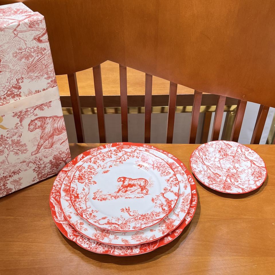 Juego de Vajilla de Lujo con Diseño de Jungla Roja Europea Más Vendido, Plato de Porcelana Fina Exquisito