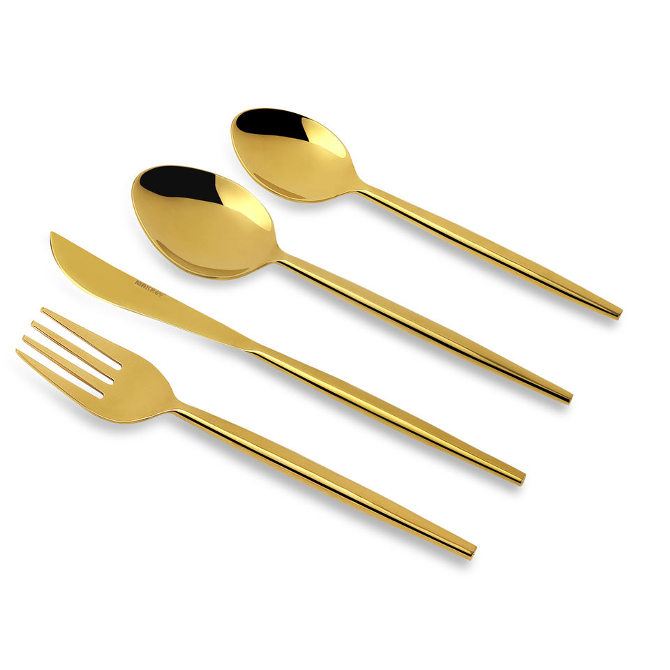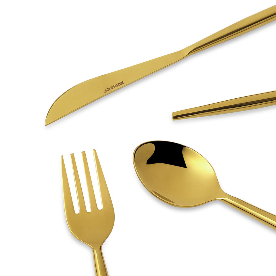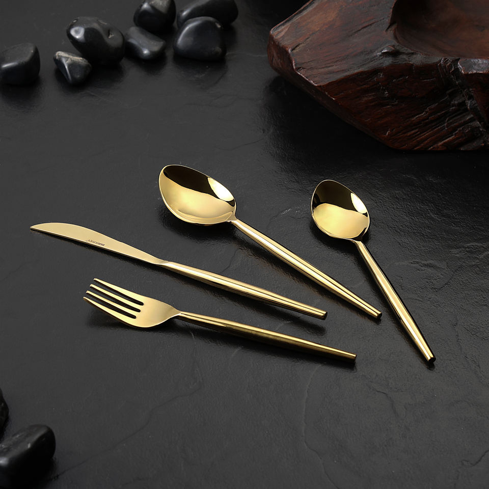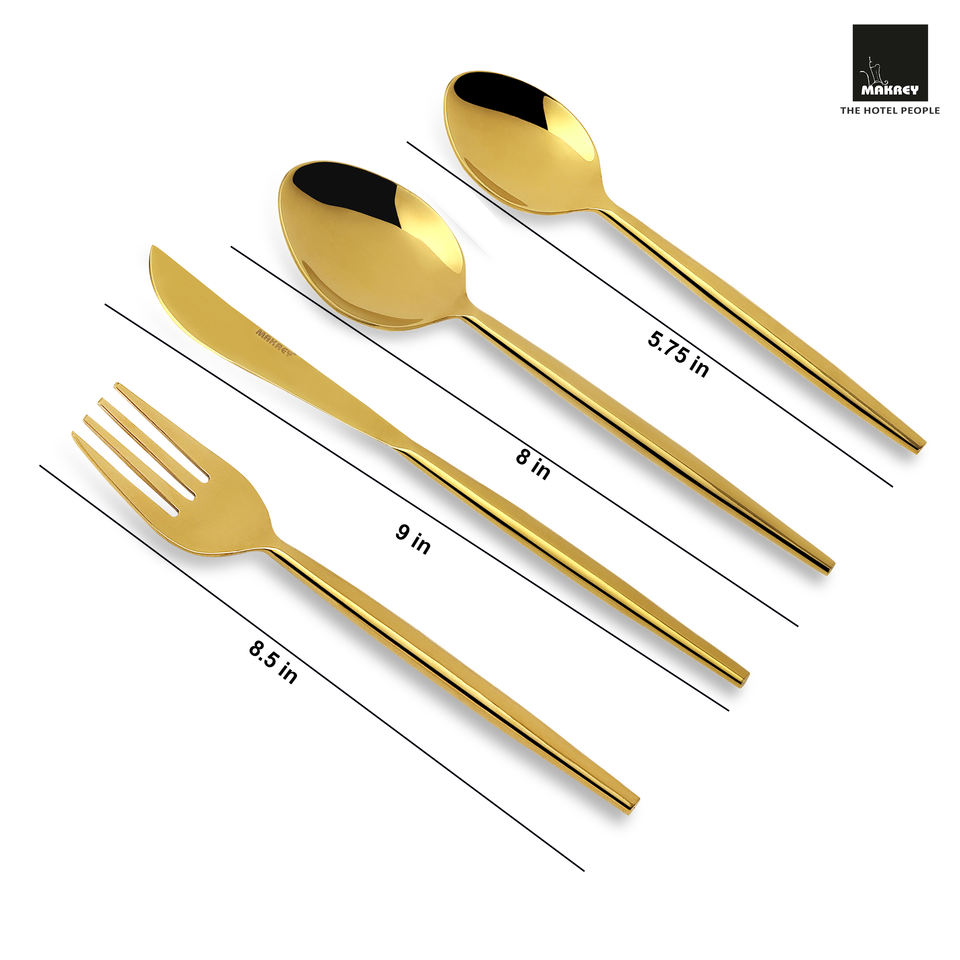 MAKREY Cuchara de té minimalista de acero inoxidable recubierta de oro superventas Belle Mango ovalado Acabado brillante Cubiertos aptos para lavavajillas