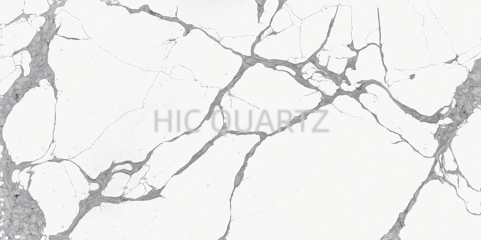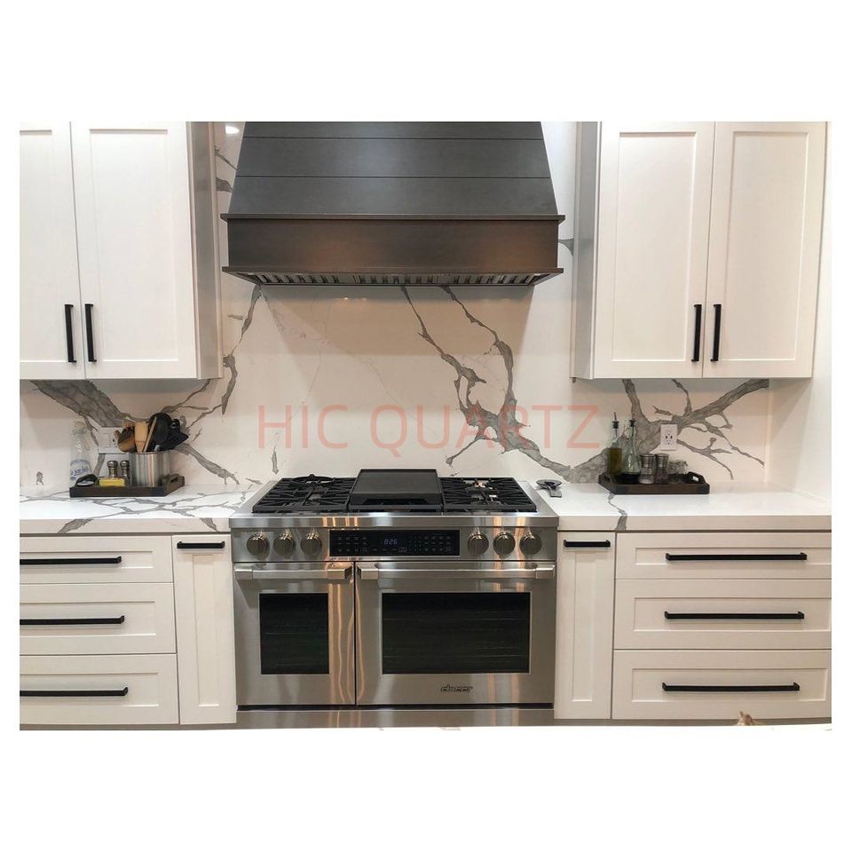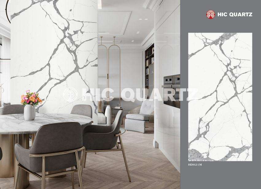 Mejor venta HIC Cuarzo HD021M Super Jumbo Tamaño Calacatta Losa de piedra de cuarzo blanco 20-30mm de espesor Excelente piedra de pared natural