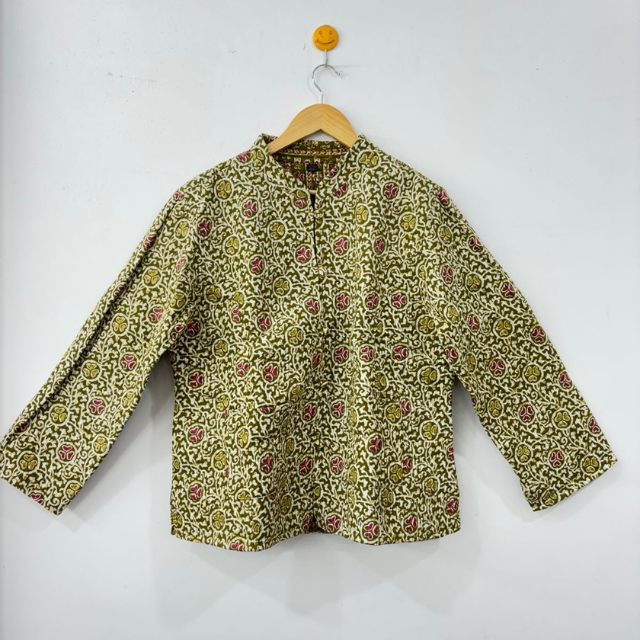 La chaqueta estampada Handblock más vendida Chaqueta floral de algodón hecha a mano acolchada de algodón disponible para suministro mundial