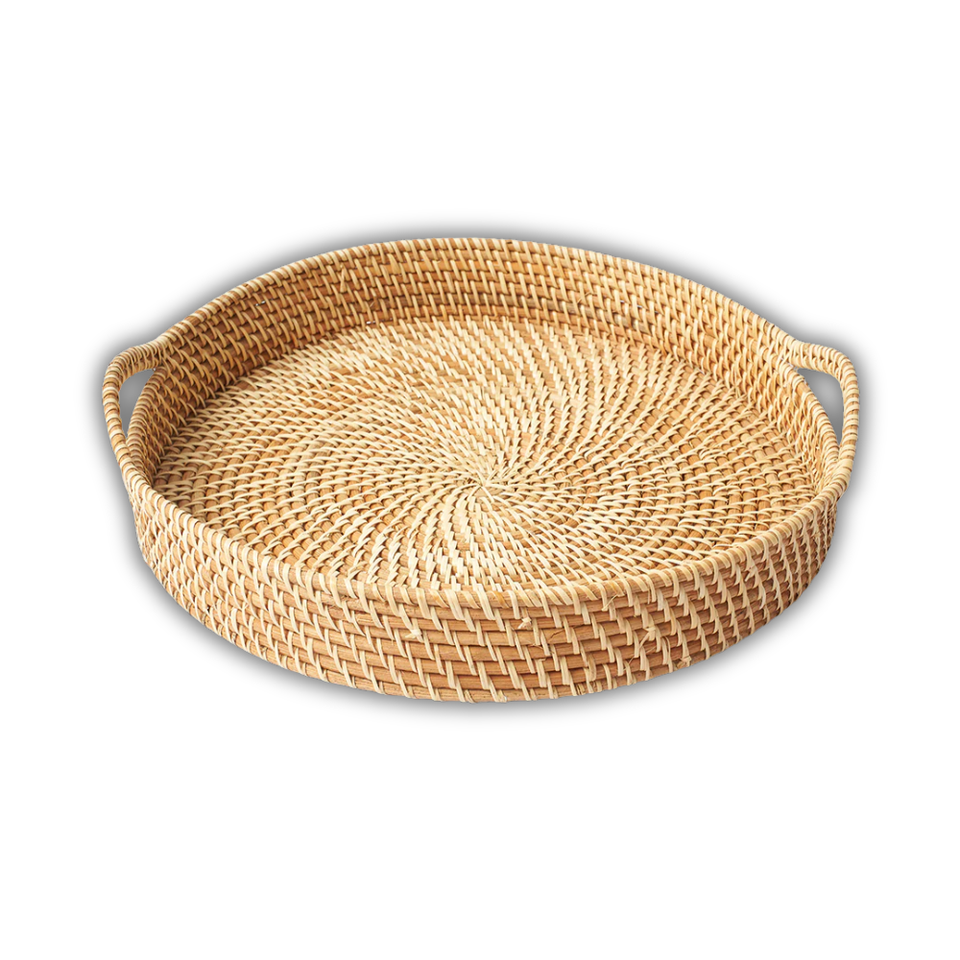 Mejor Venta de cesta de ratán de mimbre redonda hecha a mano/bandeja ecológica bandeja de ratán tejida a mano Decoración de mesa y cesta para servir comida