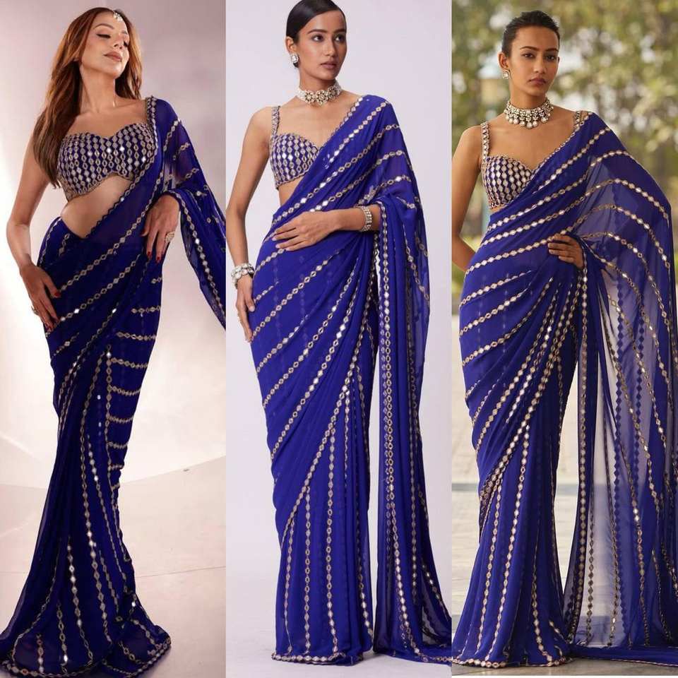 Sari de Georgette de Seda Kasturi Pesada Más Vendido, Estilo Vintage, con Bordado de Hilo Dori Zari, Adorno Tradicional con Corte Calado
