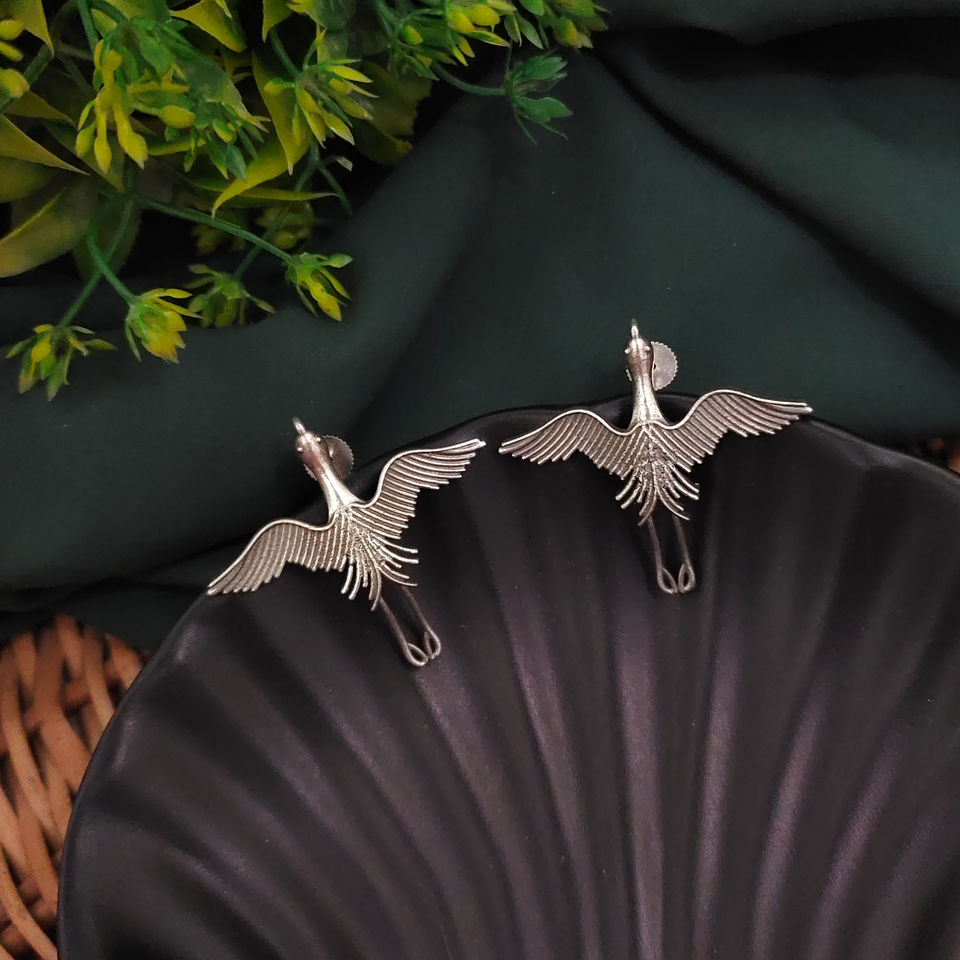 Nombre del Producto:Pendientes de botón con forma de pájaro plateado.