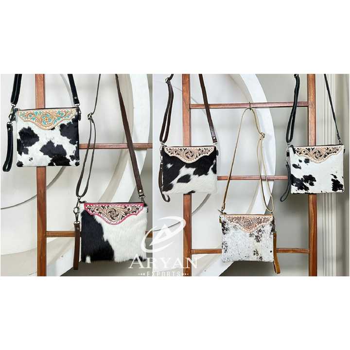 Nombre del producto:Bolso bandolera de cuero repujado con diseño floral