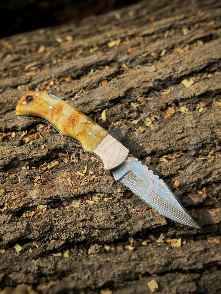 Cuchillo de bolsillo plegable de acero de Damasco de cobre de alta calidad superventas, cuchillo de bolsillo de supervivencia para acampar DIY, soporte de personalización OEM