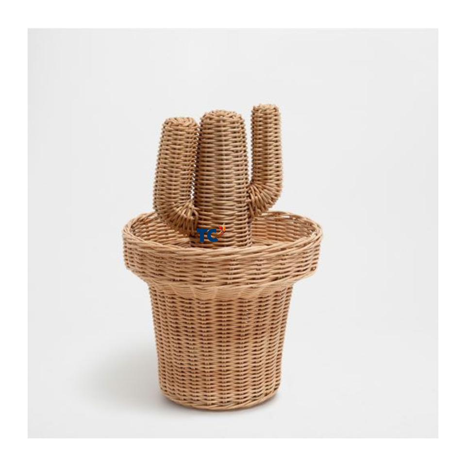 Juego de cactus verde de ratán de alta calidad superventas, recién llegado, decoración de habitación de chico hecha en el patrón de planta al por mayor superior