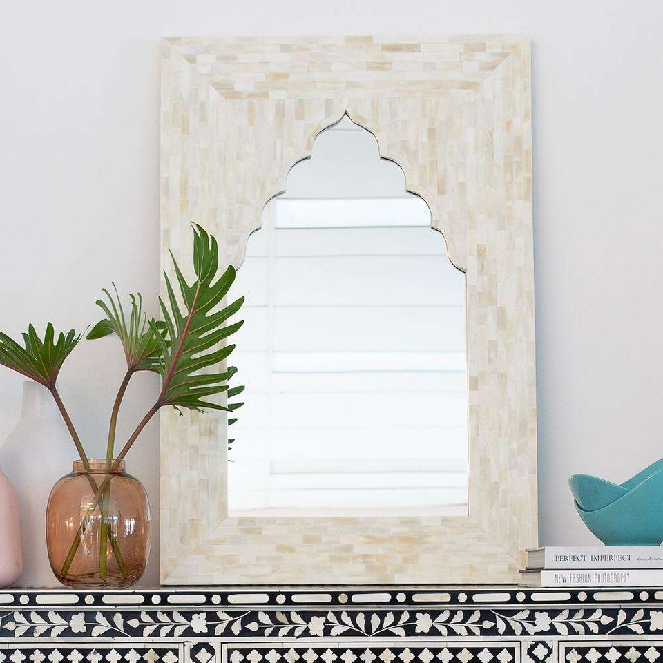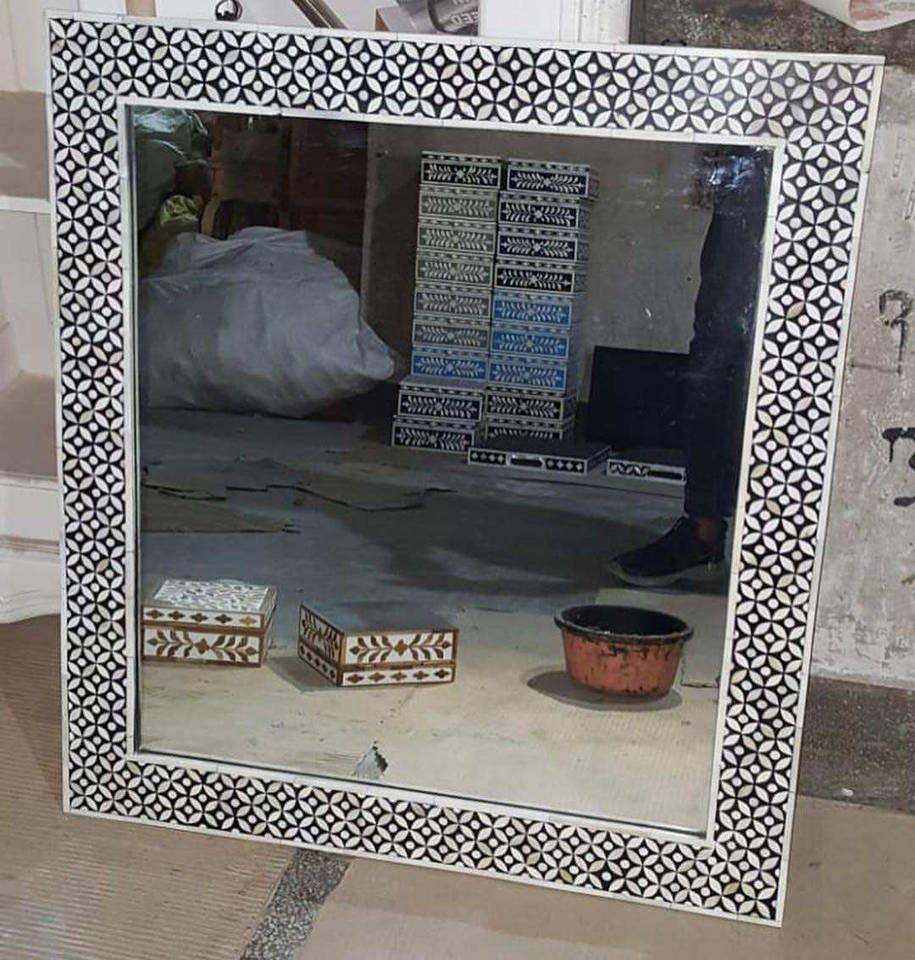 Espejo de Pared con Incrustaciones de Hueso Hecho a Mano en India, de Alta Calidad, con Incrustaciones de Madreperla, Marco Decorativo de Estilo Moderno para Decoración del Hogar