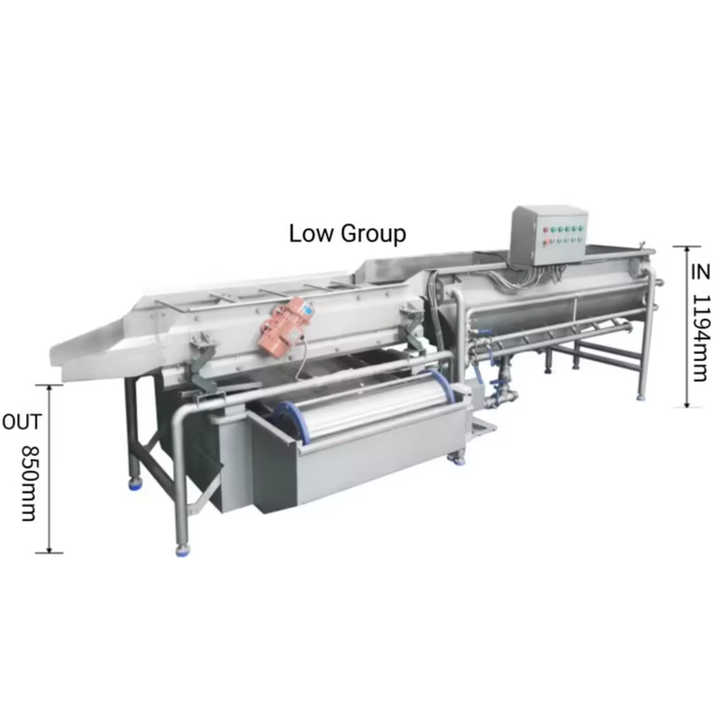 : Función:Utilizado principalmente para limpiar verduras y materiales precortados. Adopta la circulación del agua del vórtice y la tecnología de la vibración, haciendo los materiales caer hacia arriba y hacia abajo, asegurando la limpieza a fondo, todo alrededor sin ángulos muertos. Equipado con un dispositivo de limpieza por vibración, mejora el efecto de limpieza y ayuda a eliminar los desechos.