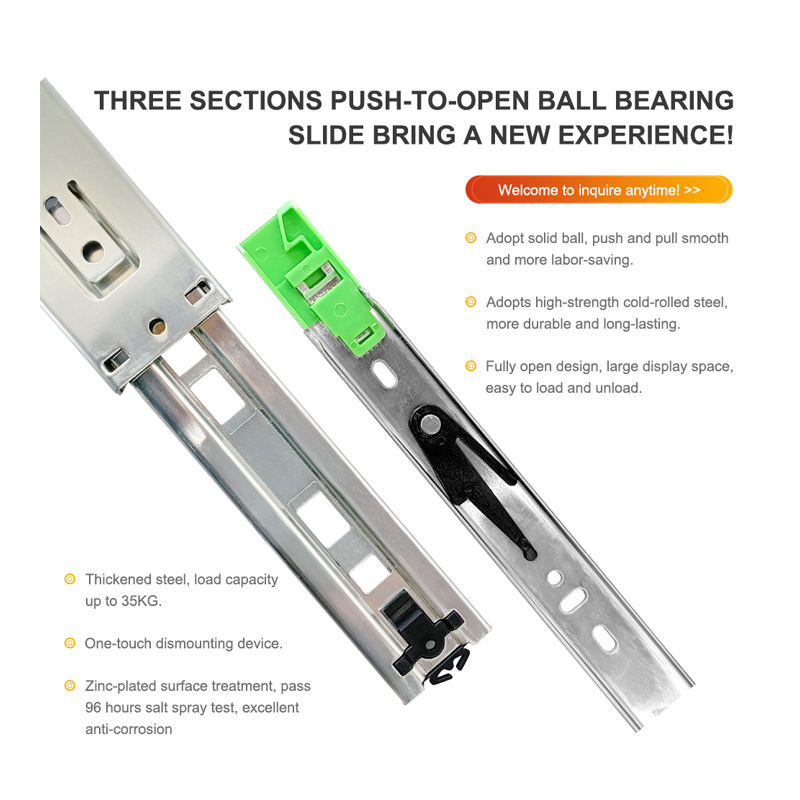Cajón de armario de cocina más vendido, Canal telescópico abierto, cierre suave, tobogán de cajón con rodamiento de bolas de 45mm