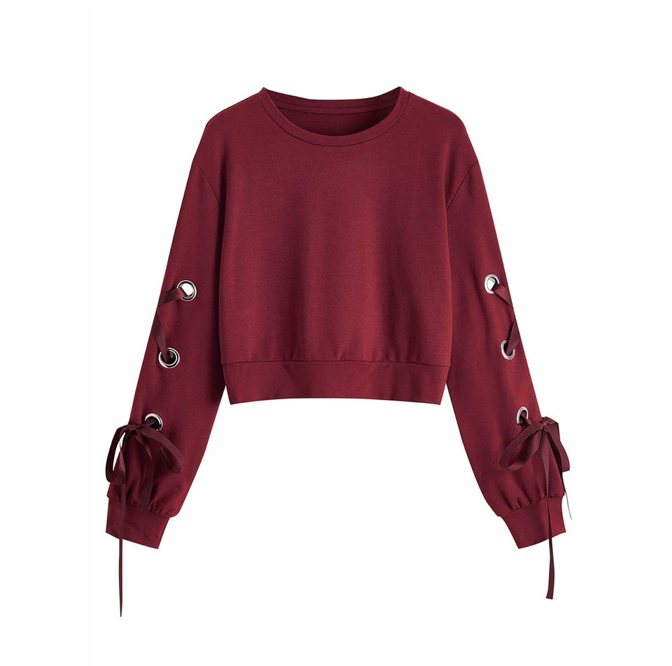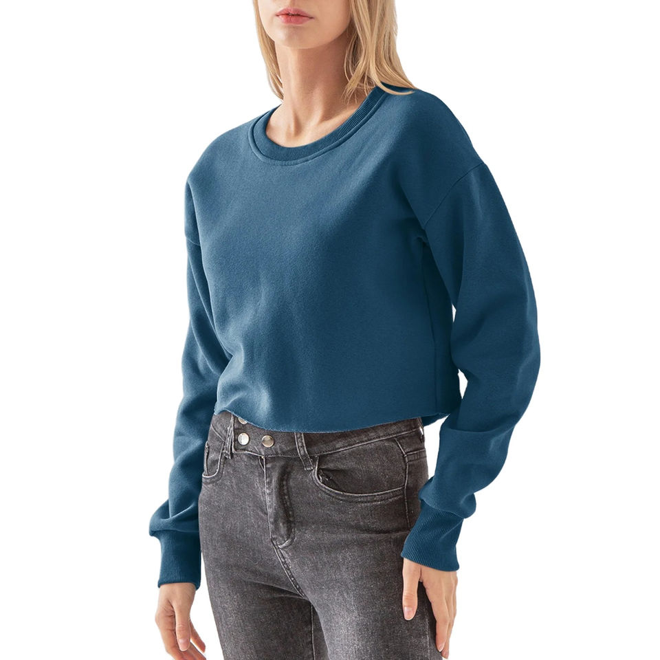 Ropa de mujer más vendida, Top corto de manga larga con estilo de Color sólido, sudadera personalizada con cuello redondo, Top corto, sudaderas