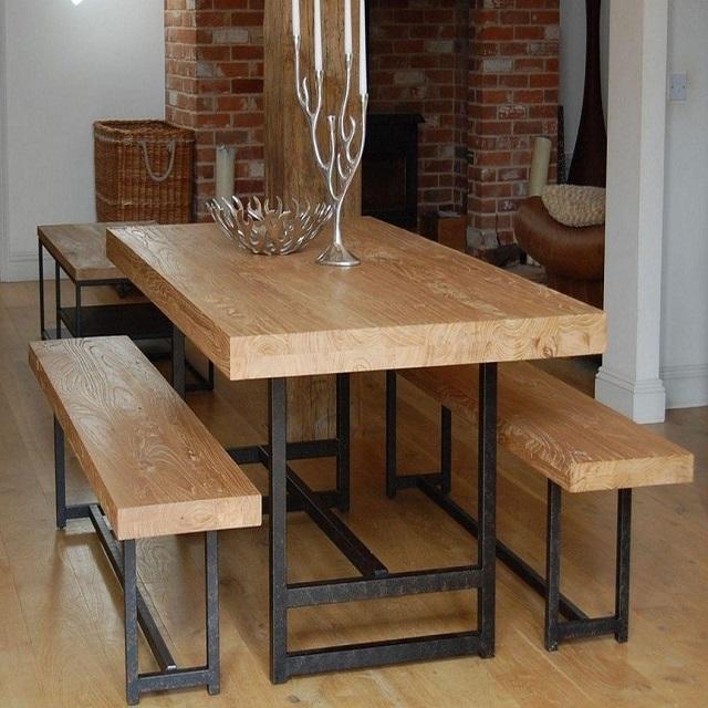 Juego de Banco de mesa de comedor al aire libre con borde medieval superventas, patas de hierro, madera y metal, presupuesto al por mayor