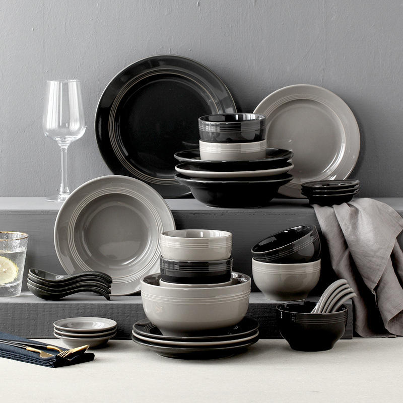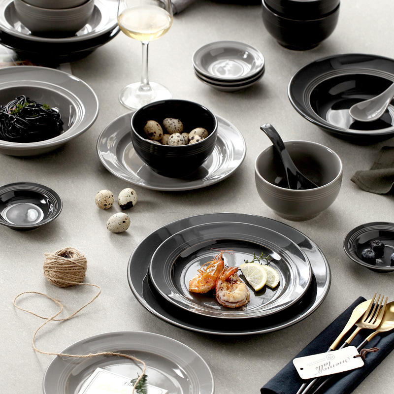 Juego de cuencos de cerámica modernos para cena, juego de platos de cerámica de primera calidad, color gris y negro, 32 piezas