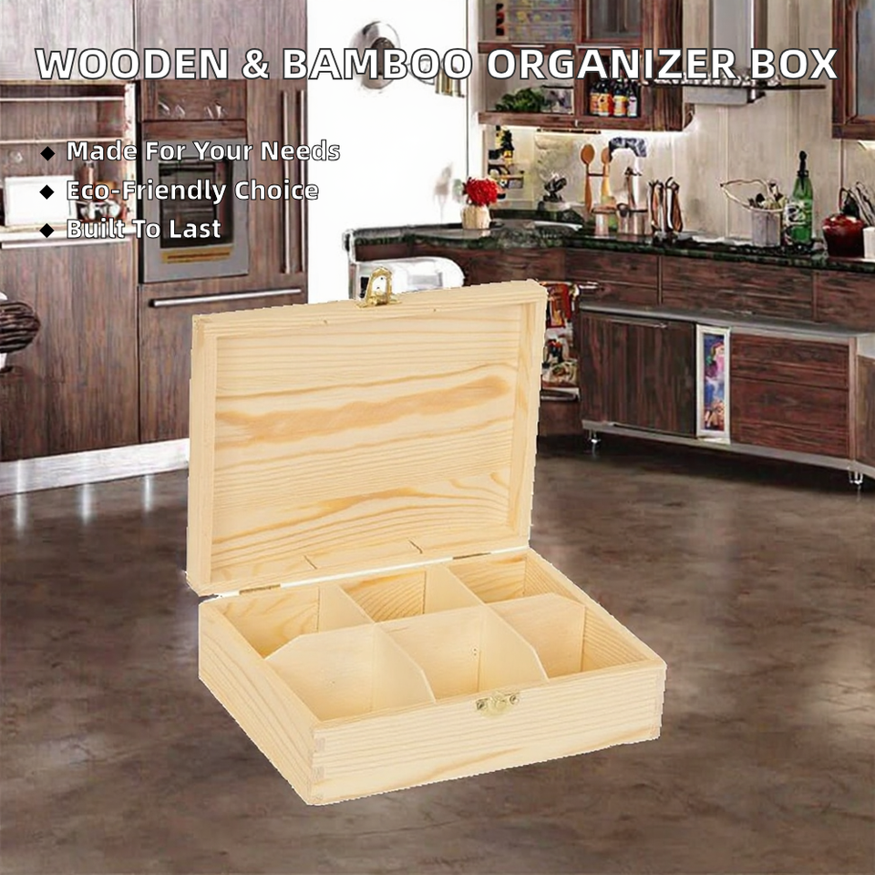 Caja Organizadora Rectangular Multiusos de Madera Biodegradable Más Vendida para Té, Especias y Artículos Esenciales de Cocina Hecha a Mano en India MAC