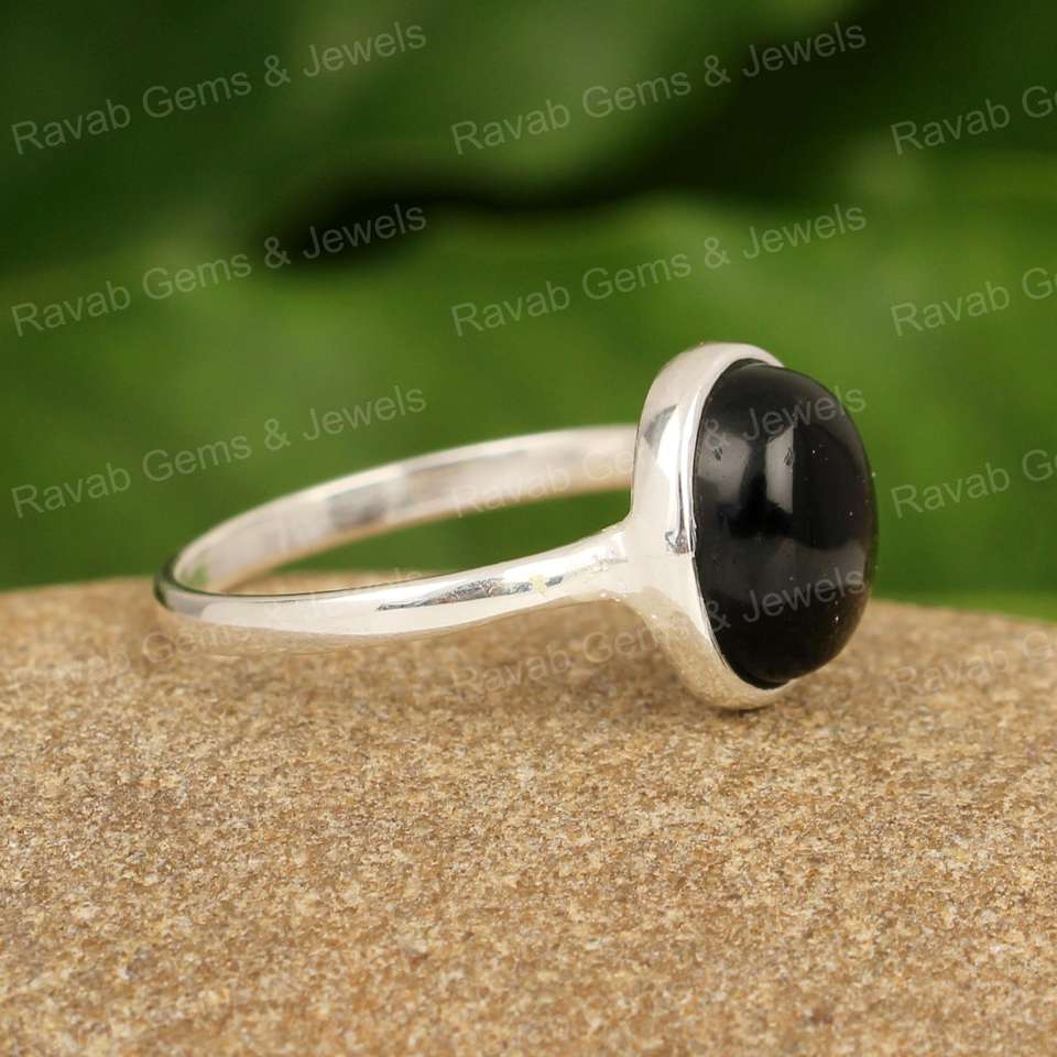Nombre del producto:Anillo de plata esterlina 925 obsidiana negra