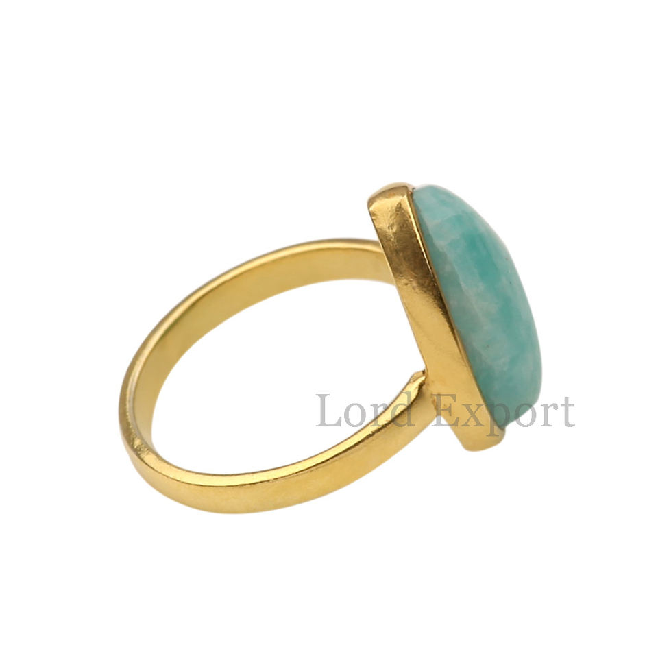 Natural amazonita pera forma plata esterlina chapado en oro anillo de piedras preciosas