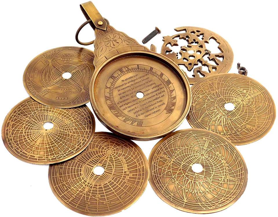 Astrolabe náutico de latón personalizado, astrolabe árabe con soporte de madera, estilo antiguo, superventas