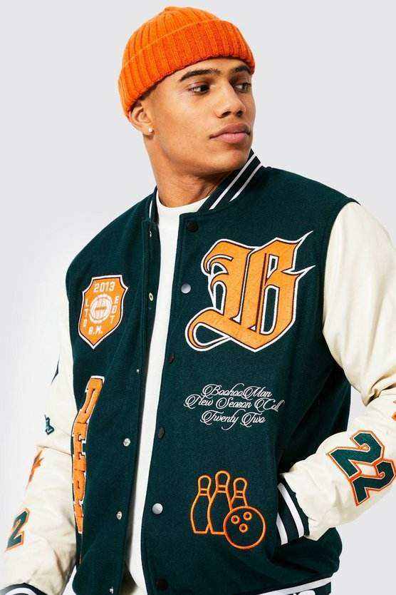 Chaqueta de béisbol Bomber para hombre, nuevo diseño más vendido, de talla grande, parches personalizados, logotipo bordado, chaqueta universitaria Letterman para hombre