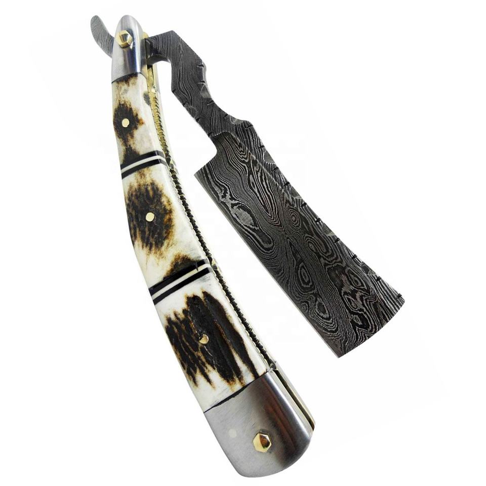 Maquinilla de afeitar plegable de barbero clásica New Friends superventas con ciervo y mango de acero, vaina de cuero para uso en salón de casa, afeitadora de seguridad
