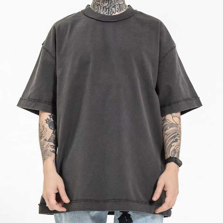 Camiseta de Hombre con Lavado Ácido, Estilo Nuevo y Más Vendida, Camiseta de Hombre con Lavado Ácido de Gran Gramaje
