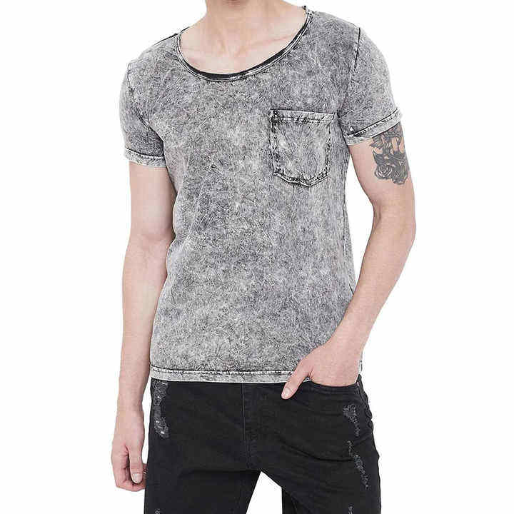 Camiseta de Hombre con Lavado Ácido, Estilo Nuevo y Más Vendida, Camiseta de Hombre con Lavado Ácido de Gran Gramaje