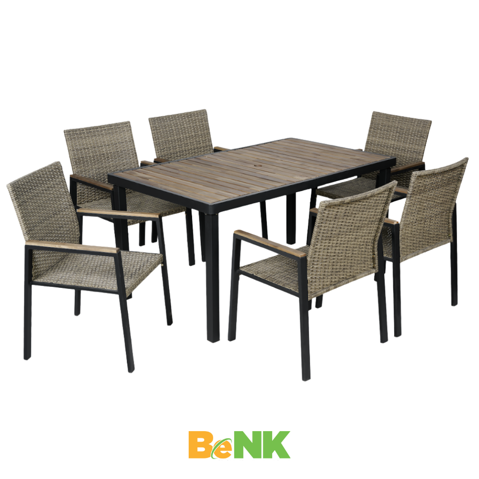 Juego de comedor de ratán PE más vendido, muebles de jardín de mimbre de alta calidad, patio exterior, escuela, granja, almacén, apartamento