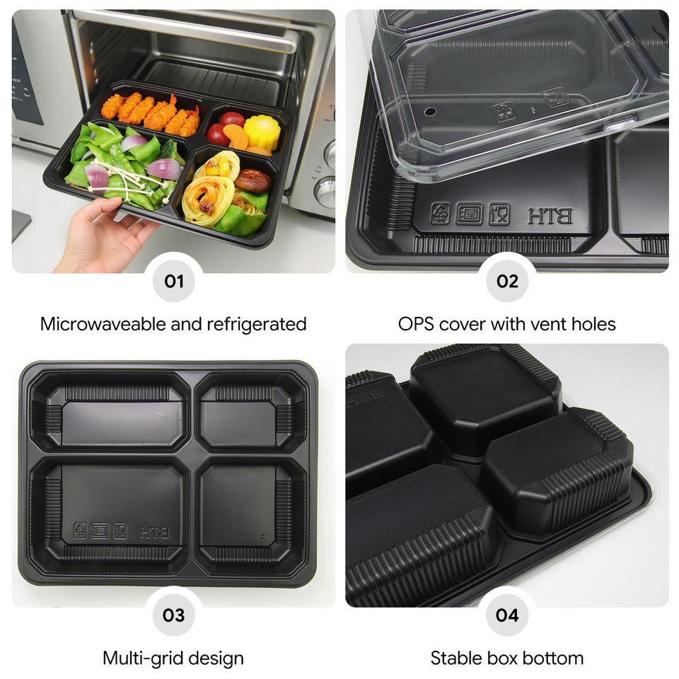 Contenedores de Comida para Llevar de Plástico PP Desechables, con 4 Compartimentos, Negros, para Comida Rápida, los Más Vendidos