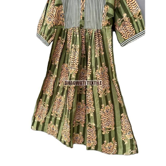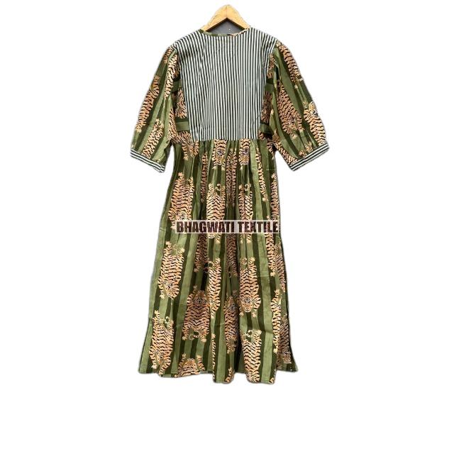 Producto más vendido Hermoso vestido con estampado de tigre Bloque de mano Vestido de algodón Estampado de bloques Vestidos largos Regalo para él