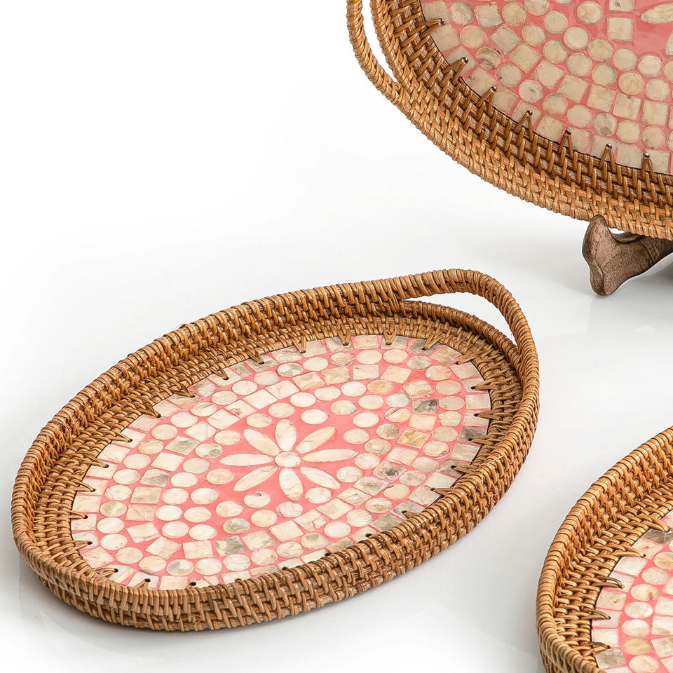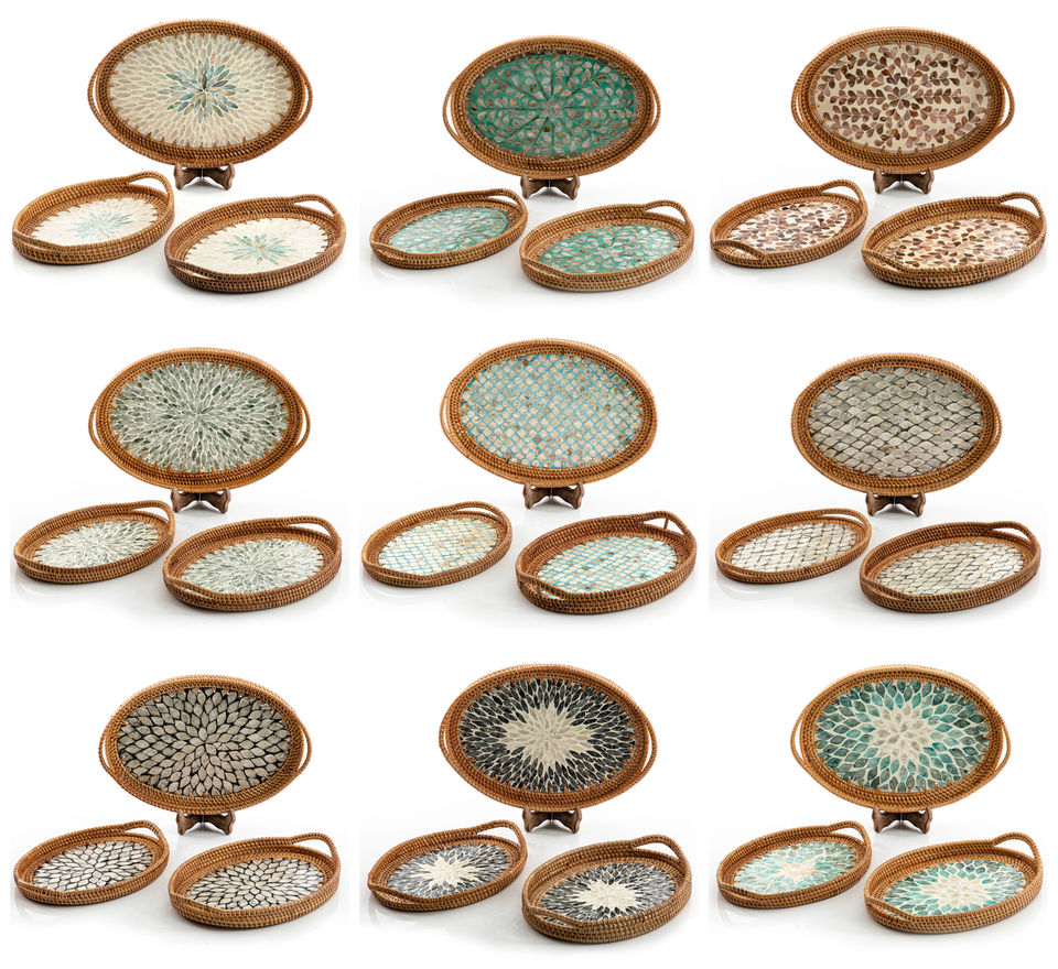 De mimbre de la madre de la perla bandejasNombre del producto