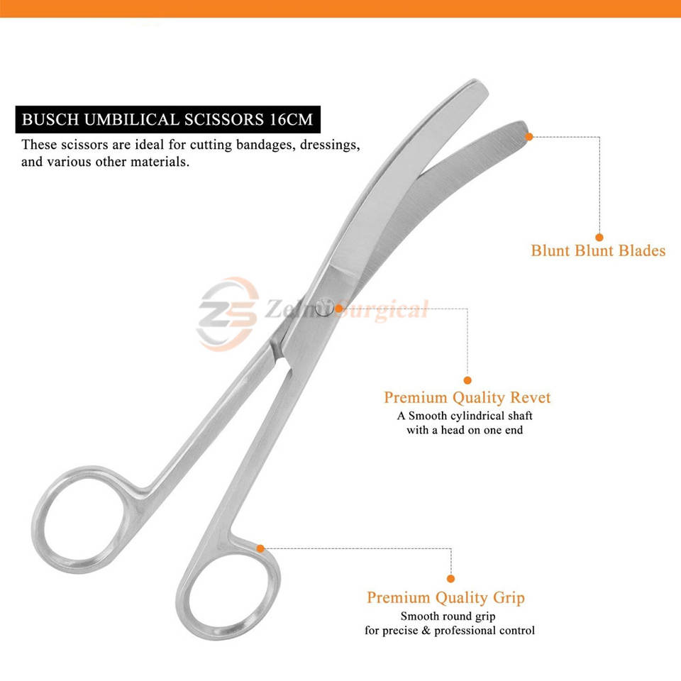 Tijeras Curvas Umbilicales Busch Profesionales Más Vendidas, Instrumentos Quirúrgicos de Acero Inoxidable ZELMI SURGICAL de Alta Calidad