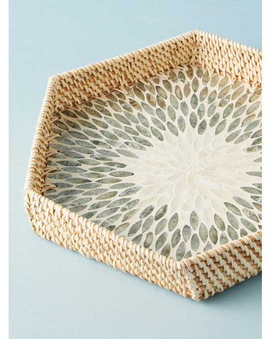 La bandeja de servicio de Ramadán de ratán más vendida, bandeja de madreperla OEM con platos, platos para Decoración de mesa, el mejor precio de Vietnam